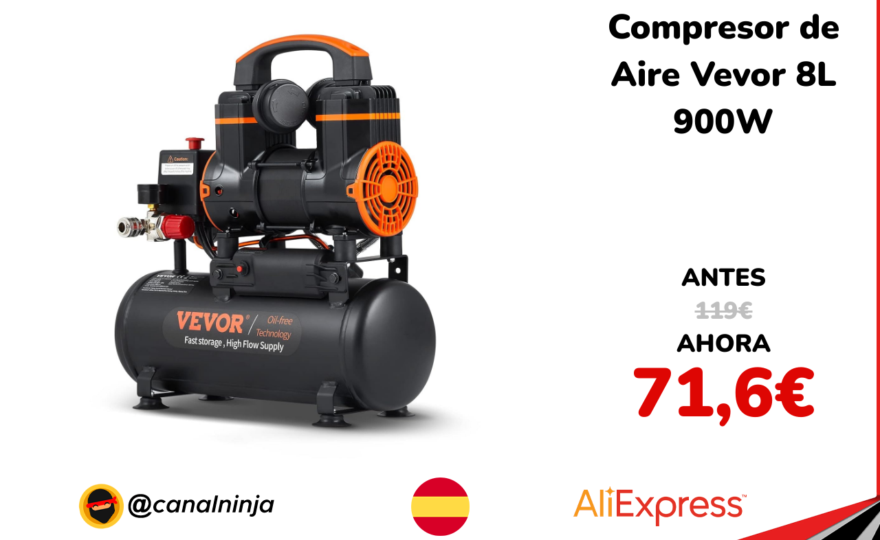 🔹 Compresor de Aire Vevor 8L 900W solo 71,6€ ❗️⚔️️ (PVP: 119€)