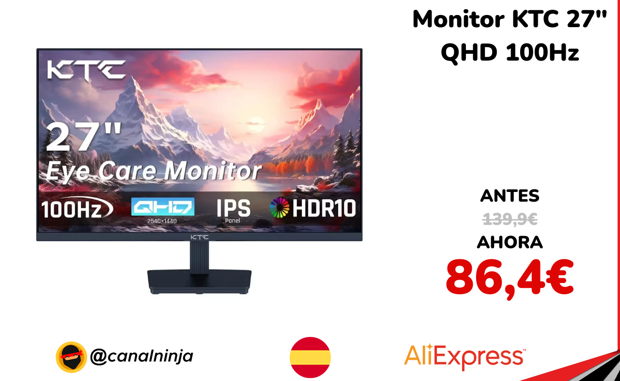 🔹 Monitor KTC 27" QHD 100Hz solo 86,4€ ❗️⚔️️ (PVP: 139,9€)