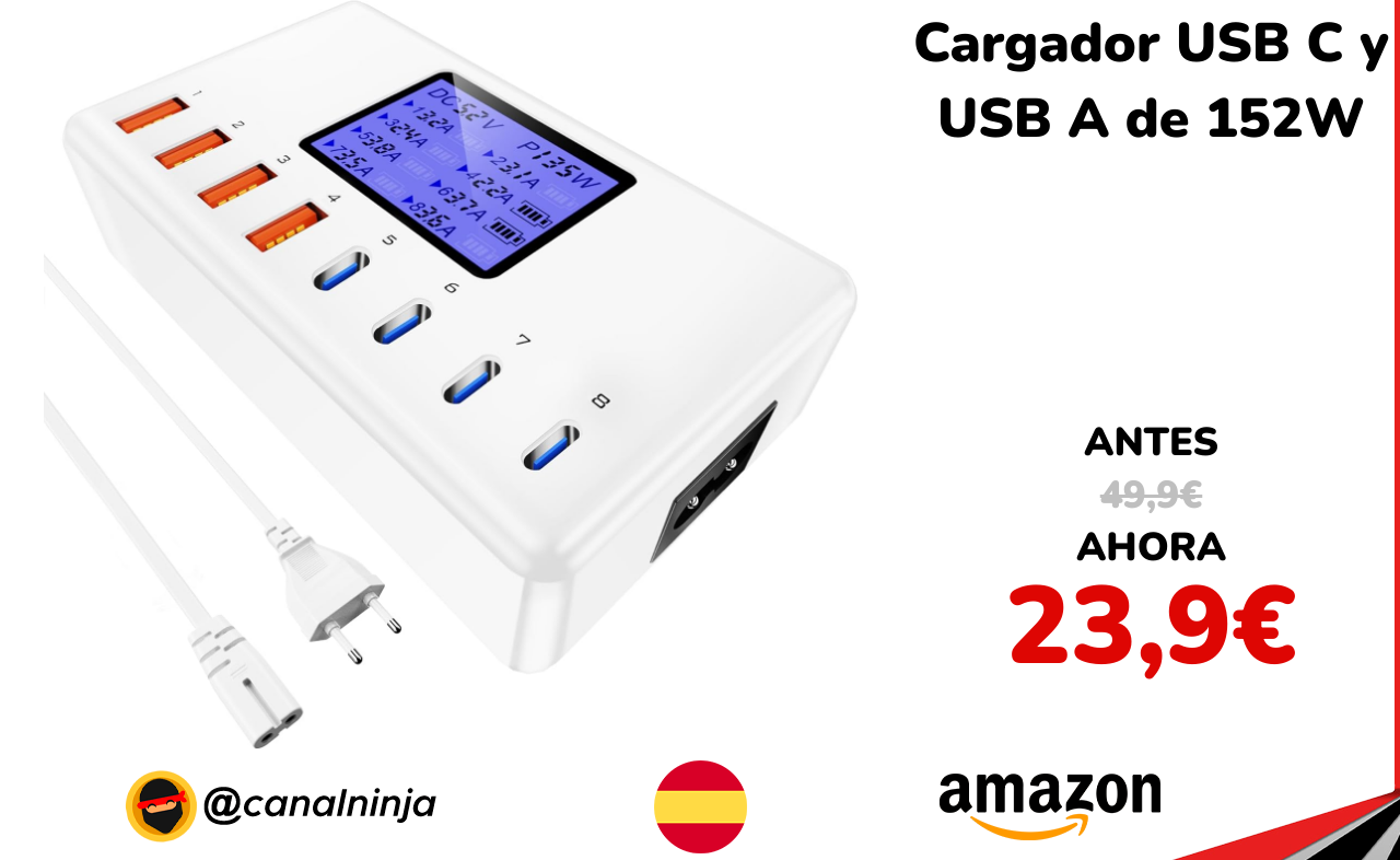 🔹 Cargador USB C y USB A de 152W solo 23,9€ ❗️⚔️️ (PVP: 49,9€)