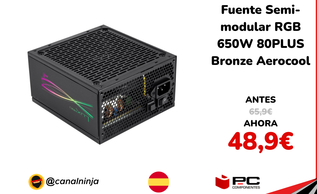 🔹 Fuente Semi-modular RGB 650W 80PLUS Bronze Aerocool solo 48,9€ ❗️⚔️️ (PVP: 65,9€)