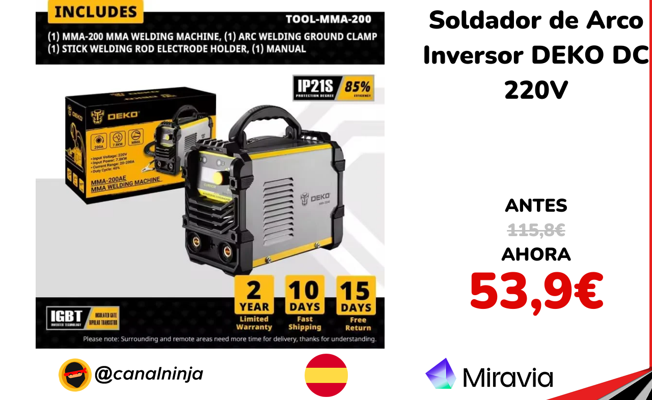 🔹 Soldador de Arco Inversor DEKO DC 220V solo 53,9€ ❗️⚔️️ (PVP: 115,8€)
