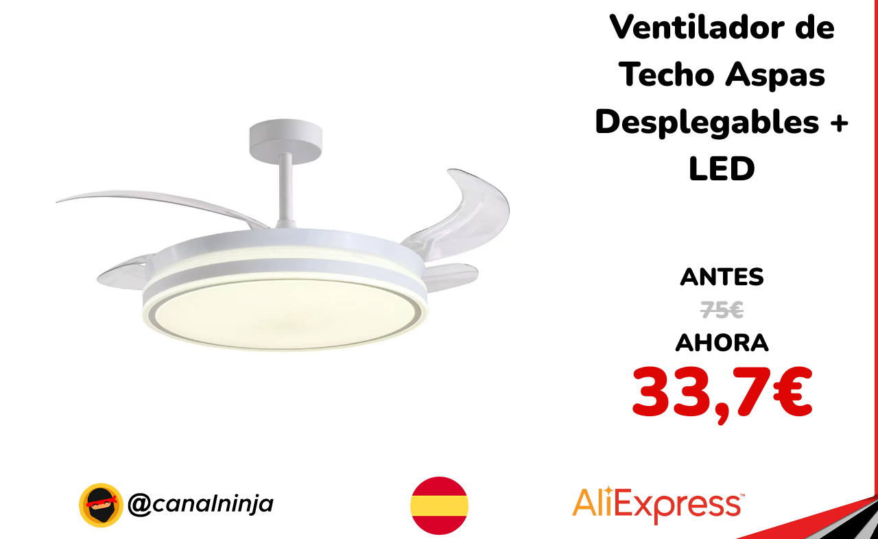 🔹 Ventilador de Techo Aspas Desplegables + LED solo 33,7€ ❗️⚔️️ (PVP: 75€)
