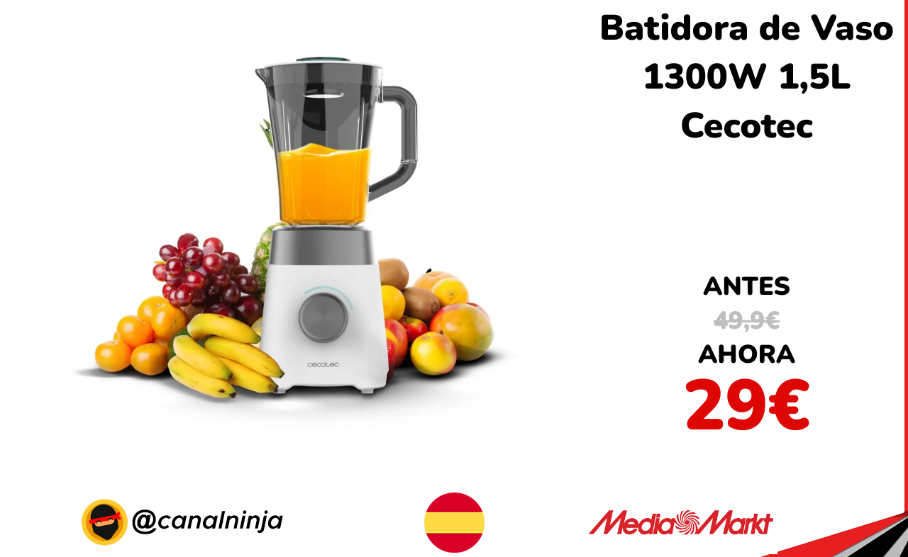 🔹 Batidora de Vaso 1300W 1,5L Cecotec solo 29€ ❗️⚔️️ (PVP: 49,9€)