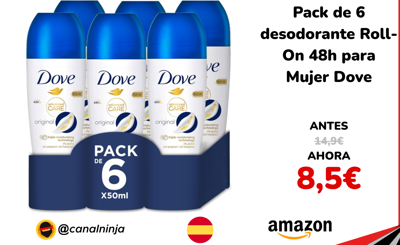 🔹 Pack de 6 desodorante Roll-On 48h para Mujer Dove solo 8,5€ ❗️⚔️️ (PVP: 14,9€)