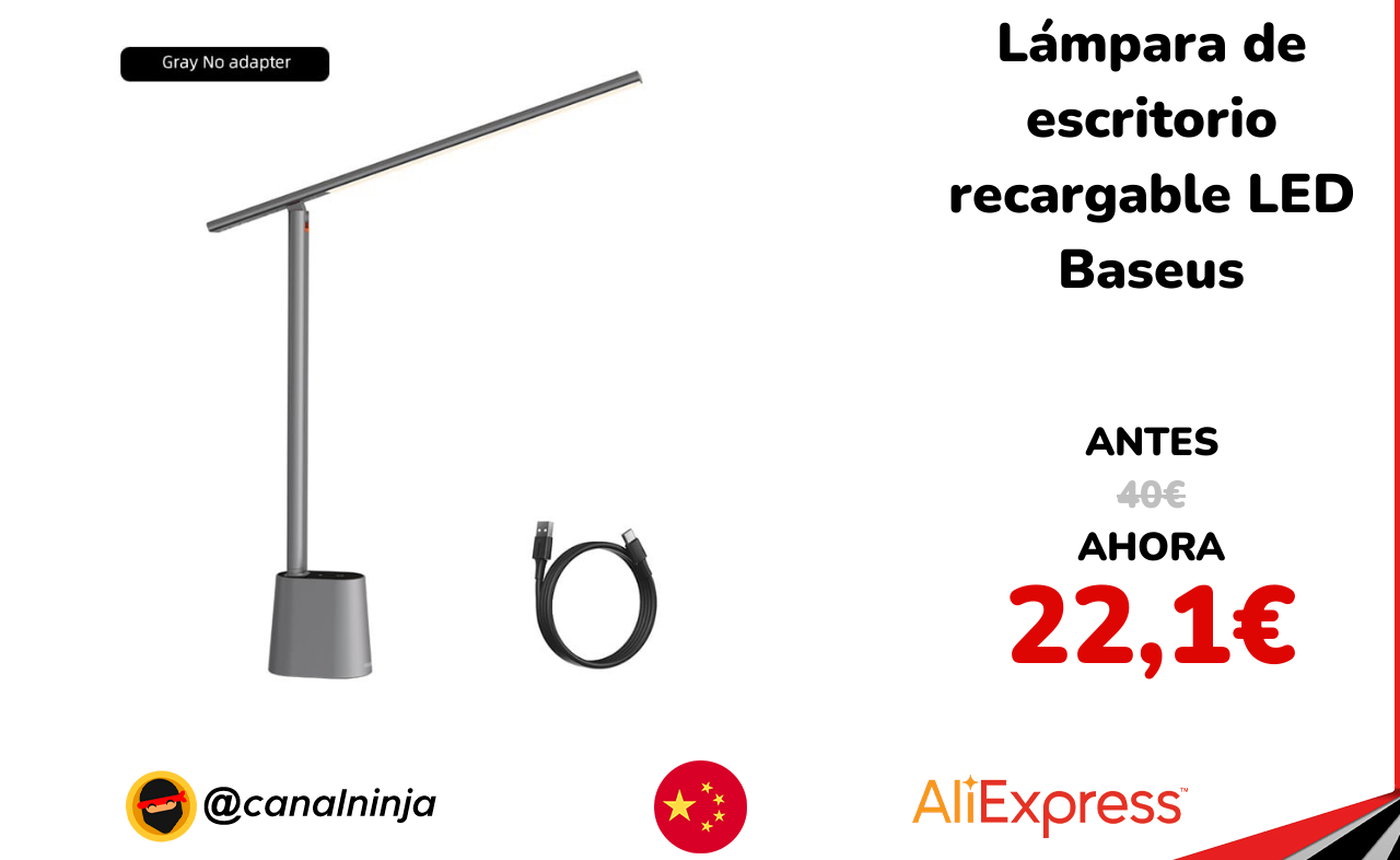 🔹 Lámpara de escritorio recargable LED Baseus solo 22,1€ ❗️⚔️️ (PVP: 40€)