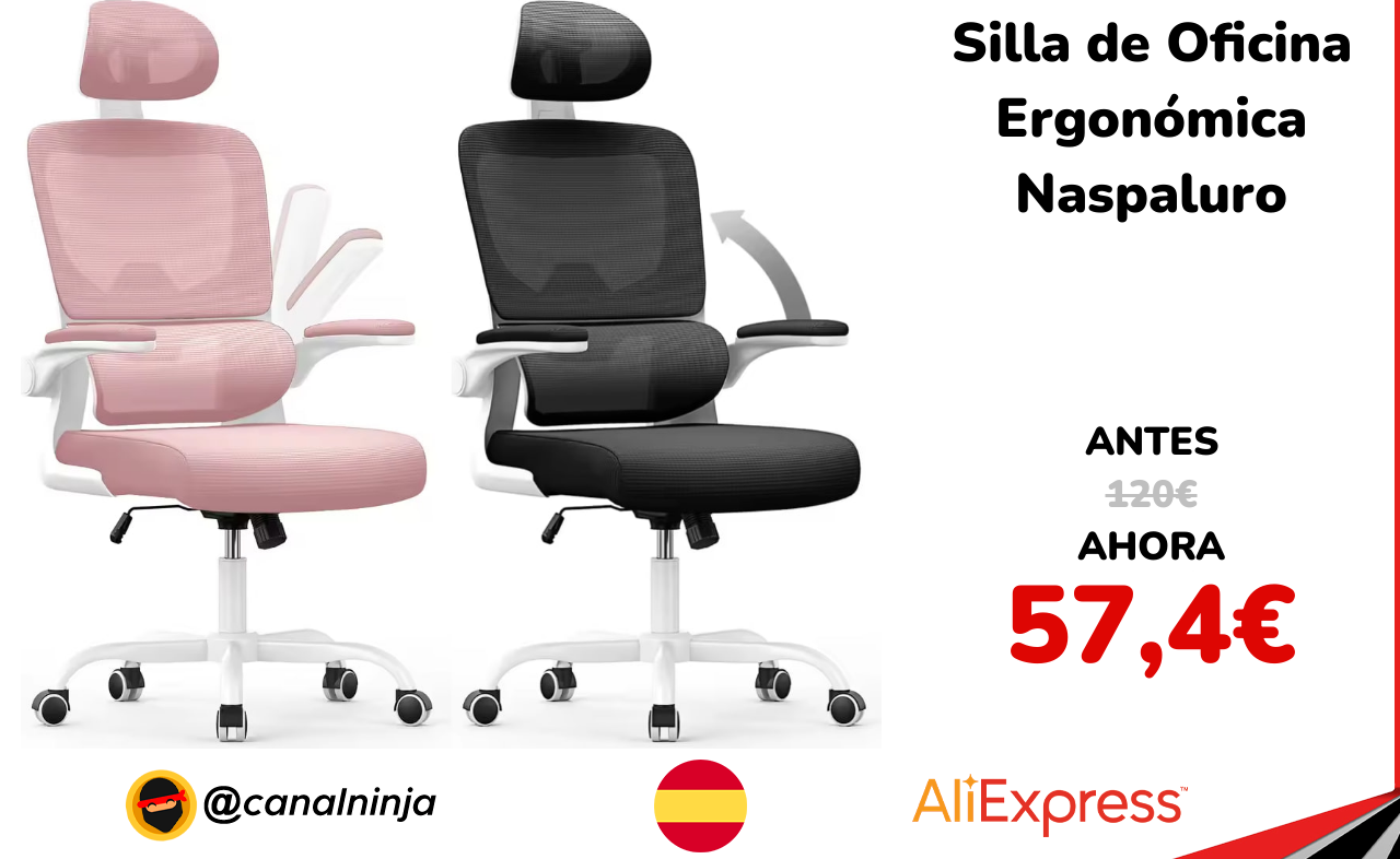 🔹 Silla de Oficina Ergonómica Naspaluro solo 57,4€ ❗️⚔️️ (PVP: 120€)