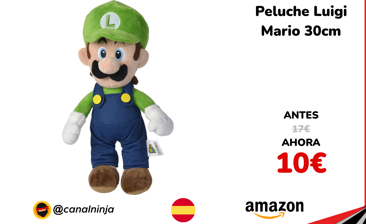 ✨ Bajada de precio para este peluche de 30 cm de Luigi, Super Mario. Tiene un diseño adorable, detalles y excelentes acabados, por lo que es ideal como regalo para los más pequeños de la casa o para los fans de Mario. Vendido y enviado por Amazon.