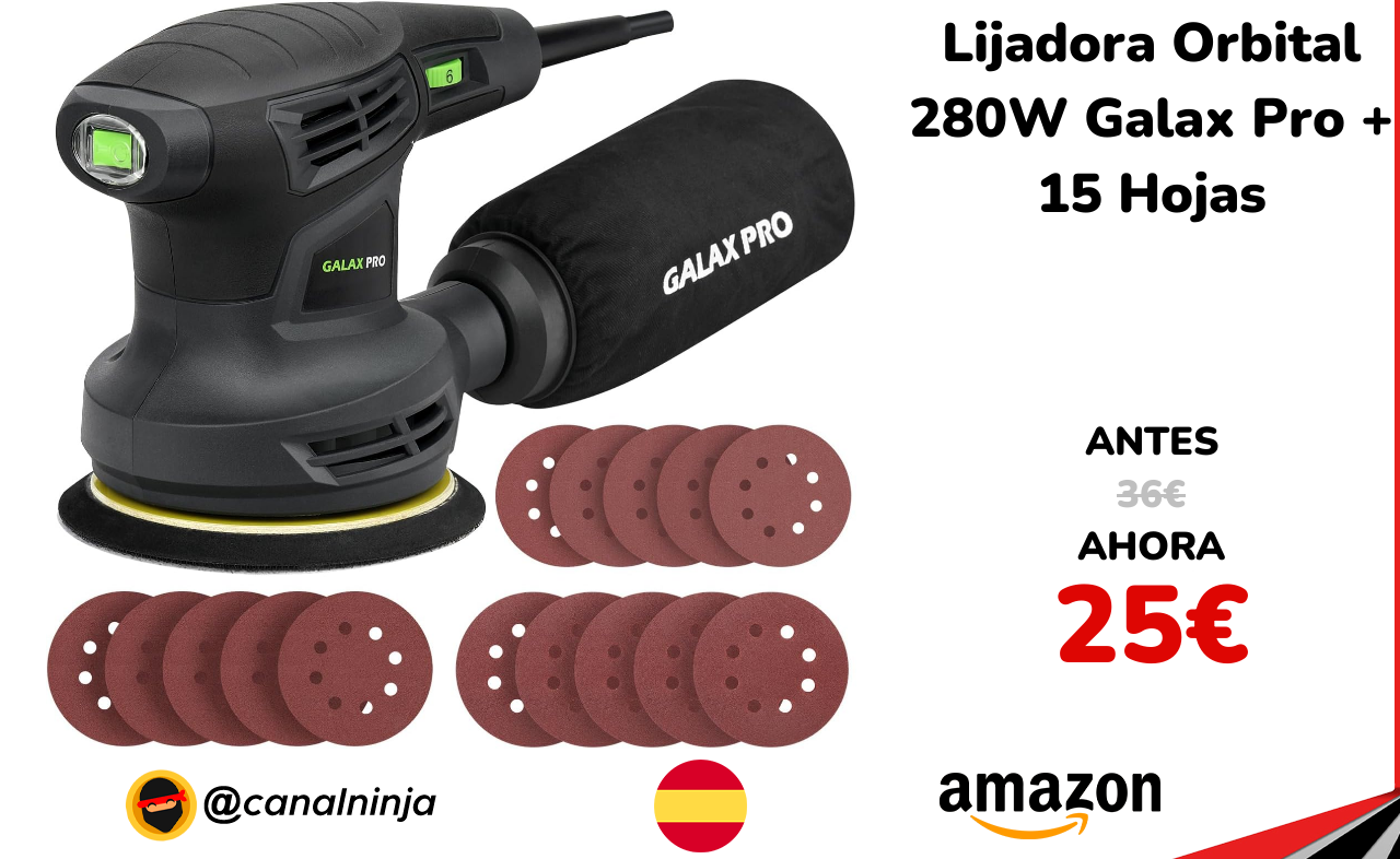🔹 Lijadora Orbital 280W Galax Pro + 15 Hojas solo 25€ ❗️⚔️️ (PVP: 36€)