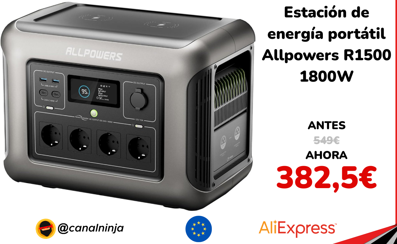 🔹 Estación de energía portátil Allpowers R1500 1800W solo 382,5€ ❗️⚔️️ (PVP: 549€)