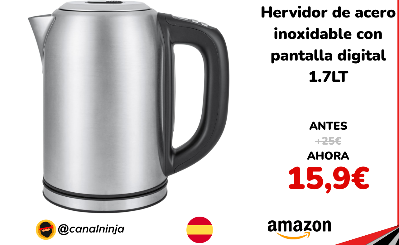 🔹 Hervidor de acero inoxidable con pantalla digital 1.7LT solo 15,9€ ❗️⚔️️ (PVP: +25€)