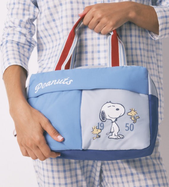 ✨ Bajada de precio para este neceser grande tipo maletín en color azul con destonos en nylon acolchado y con asas a contraste en rojo. Además, trae en un lado el estampado de Snoopy para darle ese toque cute. Es ideal para organizar tus accesorios diarios y llevar a donde necesites. Recogida en tienda GRATIS.