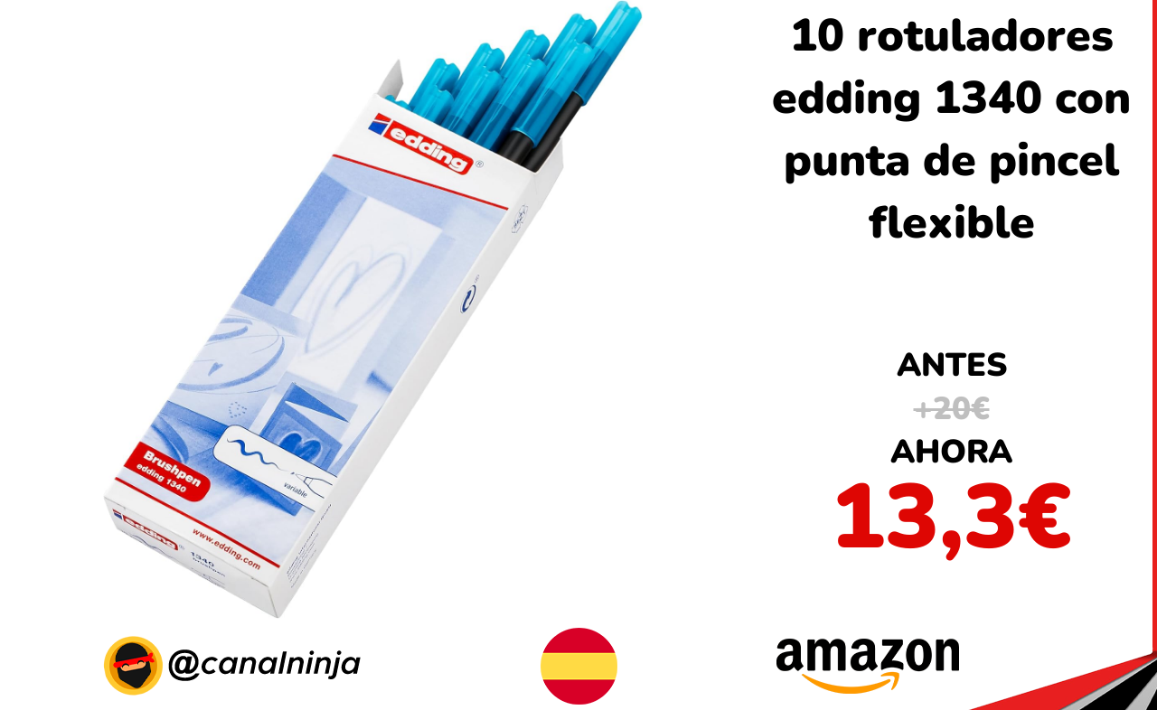 🔹 10 rotuladores edding 1340 con punta de pincel flexible solo 13,3€ ❗️⚔️️ (PVP: +20€)