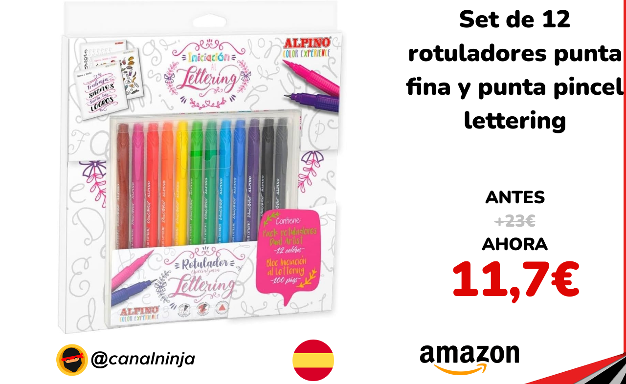 🔹 Set de 12 rotuladores punta fina y punta pincel lettering solo 11,7€ ❗️⚔️️ (PVP: +23€)