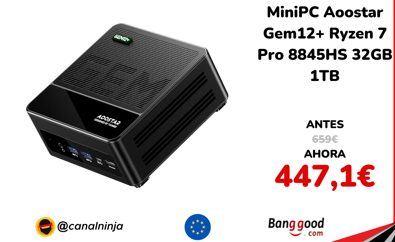 🔹 MiniPC Aoostar Gem12+ Ryzen 7 Pro 8845HS 32GB 1TB solo 447,1€ ❗️⚔️️ (PVP: 659€)