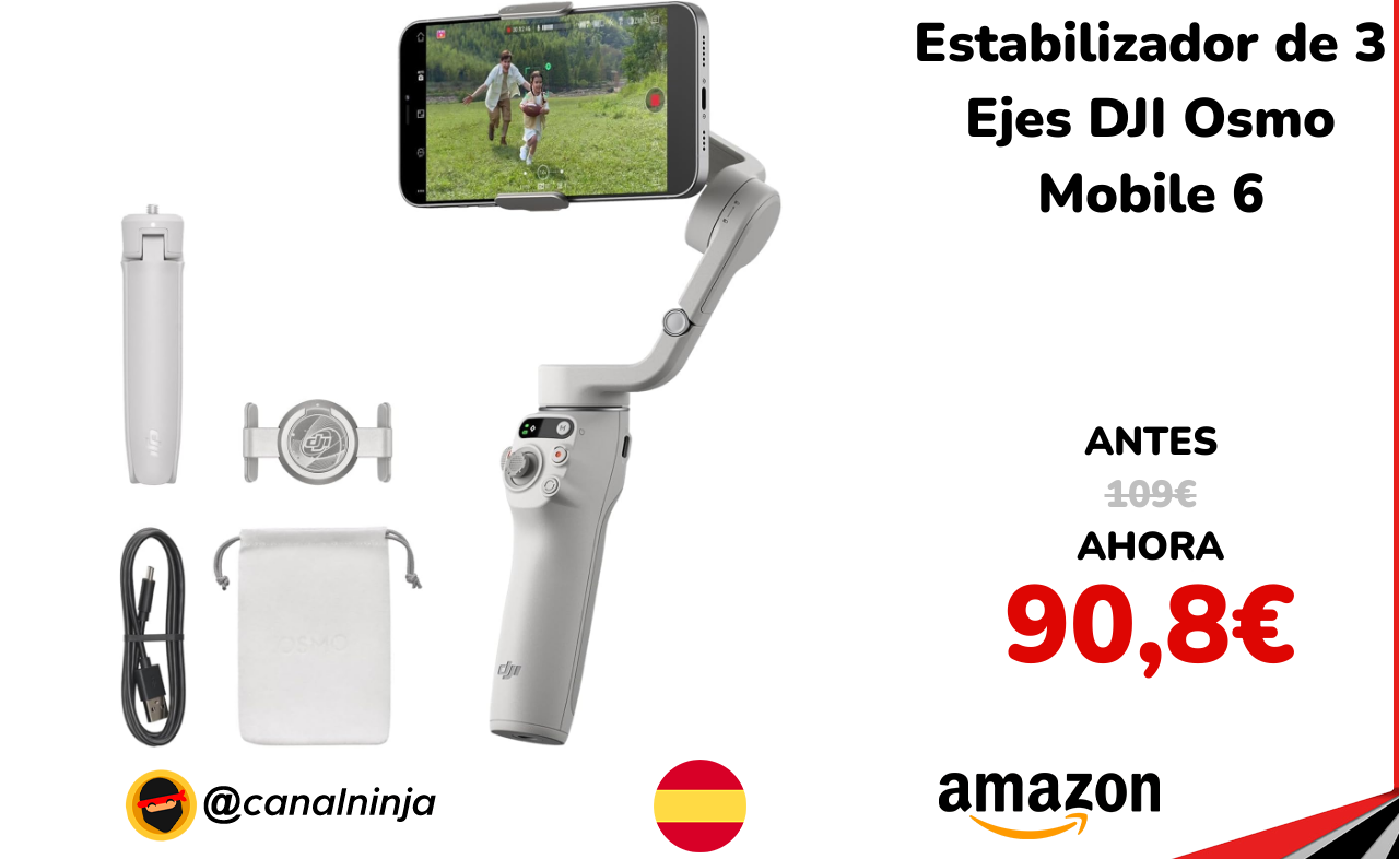 🔹 Estabilizador de 3 Ejes DJI Osmo Mobile 6 solo 90,8€ ❗️⚔️️ (PVP: 109€)