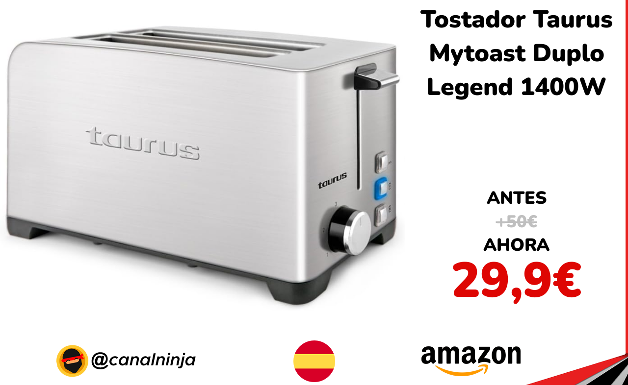🔹 Tostador Taurus Mytoast Duplo Legend 1400W solo 29,9€ ❗️⚔️️ (PVP: +50€)