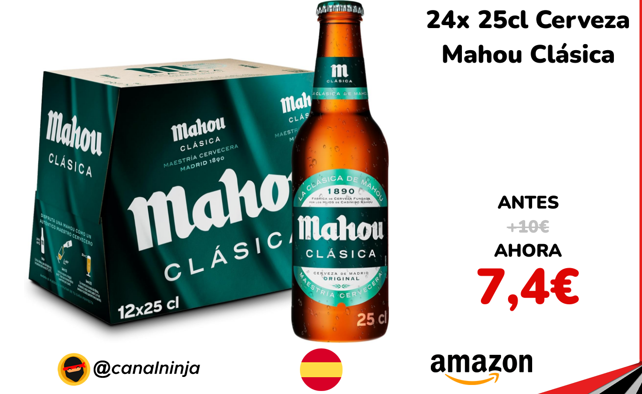 🔹 24x 25cl Cerveza Mahou Clásica solo 7,4€ ❗️⚔️️ (PVP: +10€)