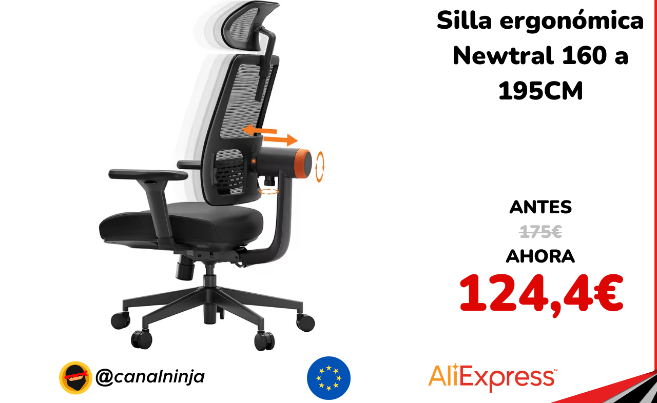🔹 Silla ergonómica Newtral 160 a 195CM solo 124,4€ ❗️⚔️️ (PVP: 175€)