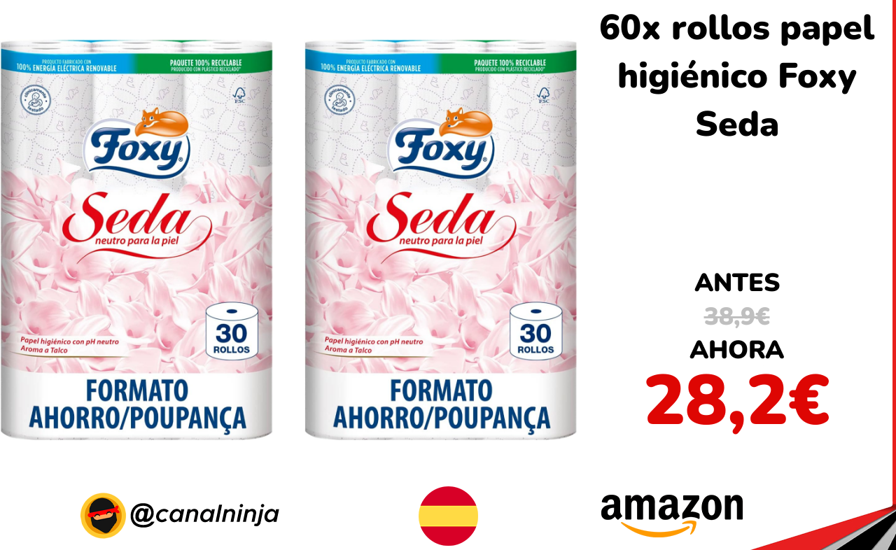 🔹 60x rollos papel higiénico Foxy Seda solo 28,2€ ❗️⚔️️ (PVP: 38,9€)