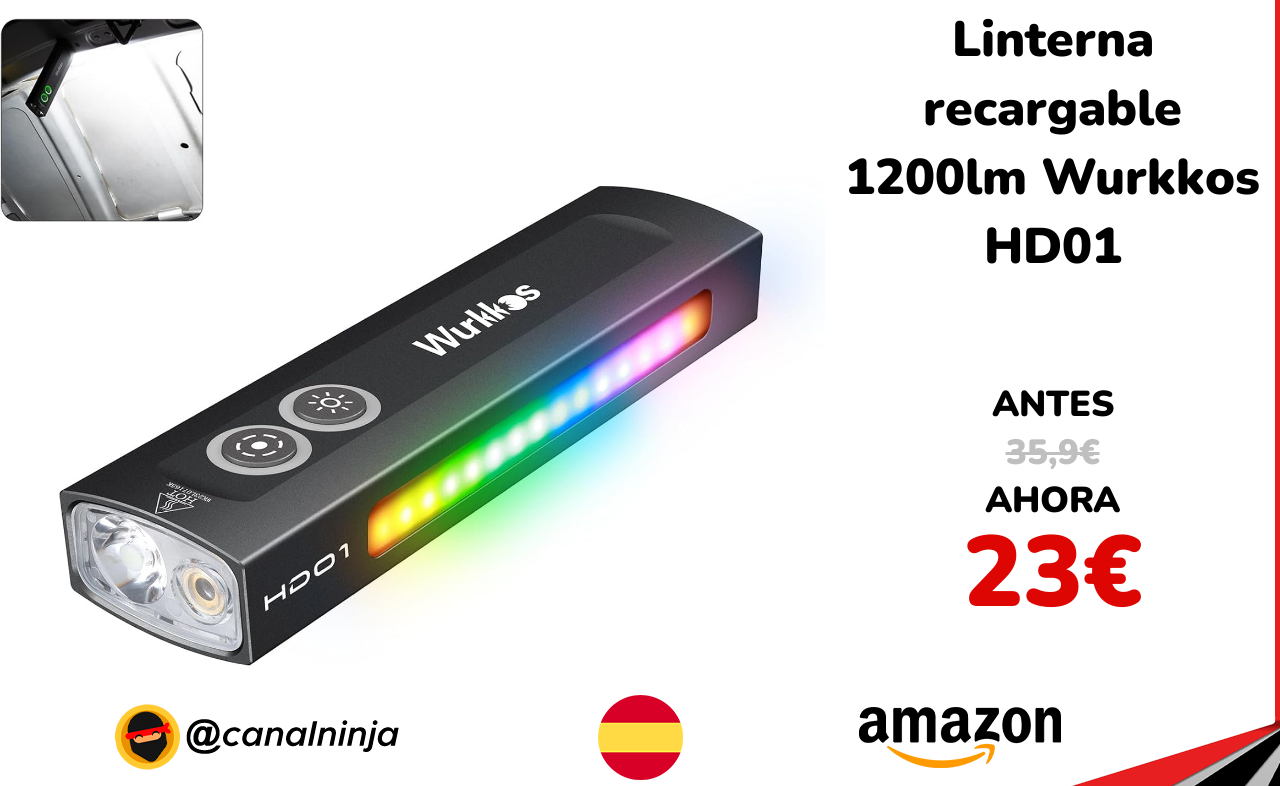 🔹 Linterna recargable 1200lm Wurkkos HD01 solo 23€ ❗️⚔️️ (PVP: 35,9€)