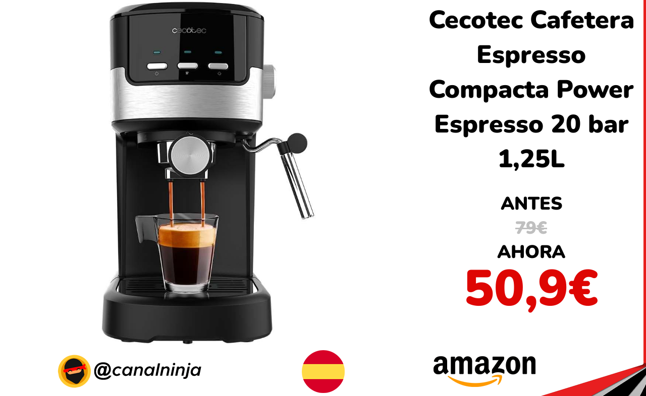 🔹 Cecotec Cafetera Espresso Compacta Power Espresso 20 bar 1,25L solo 50,9€ ❗️⚔️️ (PVP: 79€)