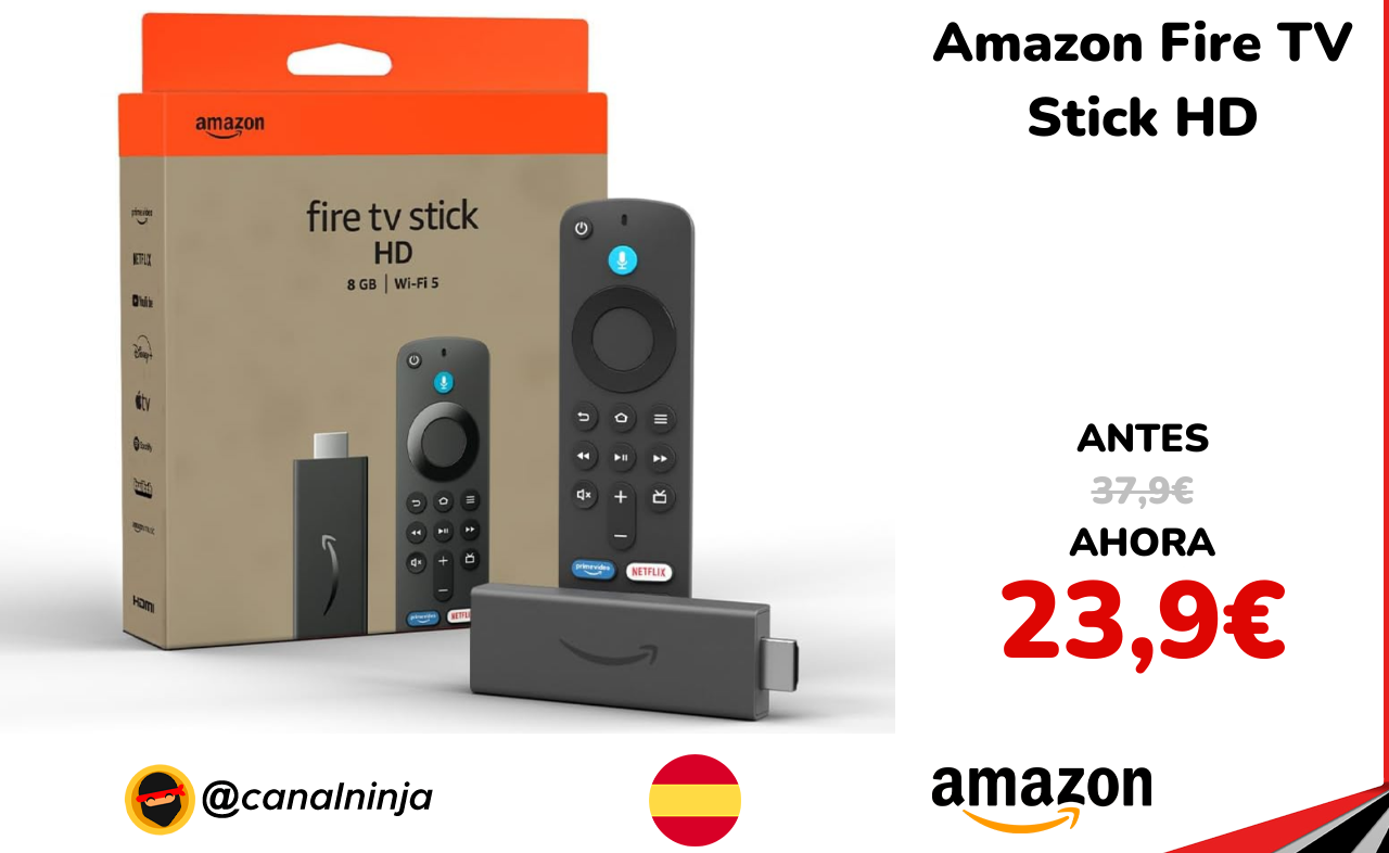 🔹 Amazon Fire TV Stick HD solo 23,9€ ❗️⚔️️ (PVP: 37,9€)