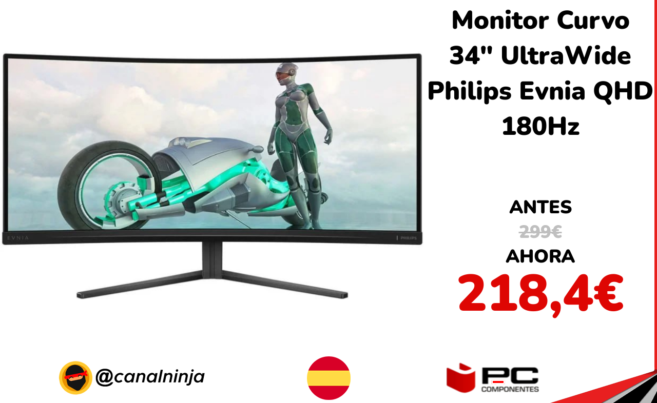 🔹 Monitor Curvo 34" UltraWide Philips Evnia QHD 180Hz solo 218,4€ ❗️⚔️️ (PVP: 299€)