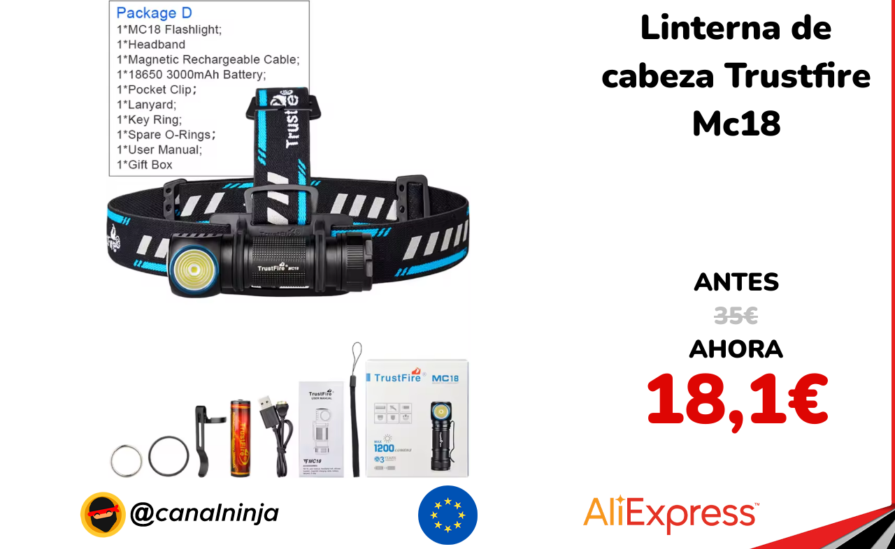 🔹 Linterna de cabeza Trustfire Mc18 solo 18,1€ ❗️⚔️️ (PVP: 35€)
