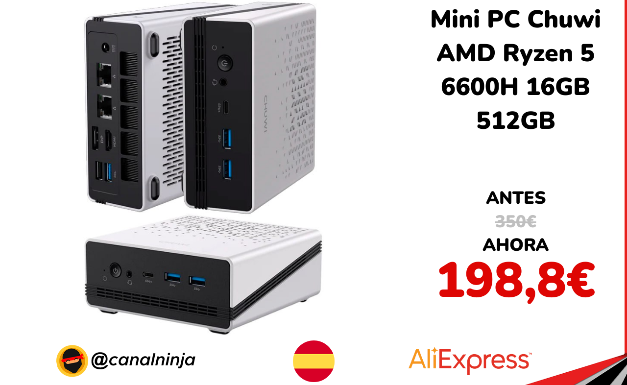 🔹 Mini PC Chuwi AMD Ryzen 5 6600H 16GB 512GB solo 198,8€ ❗️⚔️️ (PVP: 350€)
