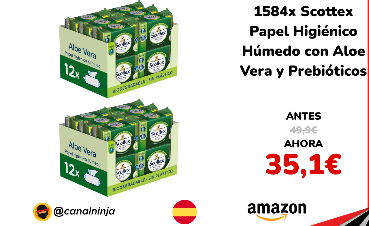 🔹 1584x Scottex Papel Higiénico Húmedo con Aloe Vera y Prebióticos solo 35,1€ ❗️⚔️️ (PVP: 49,9€)