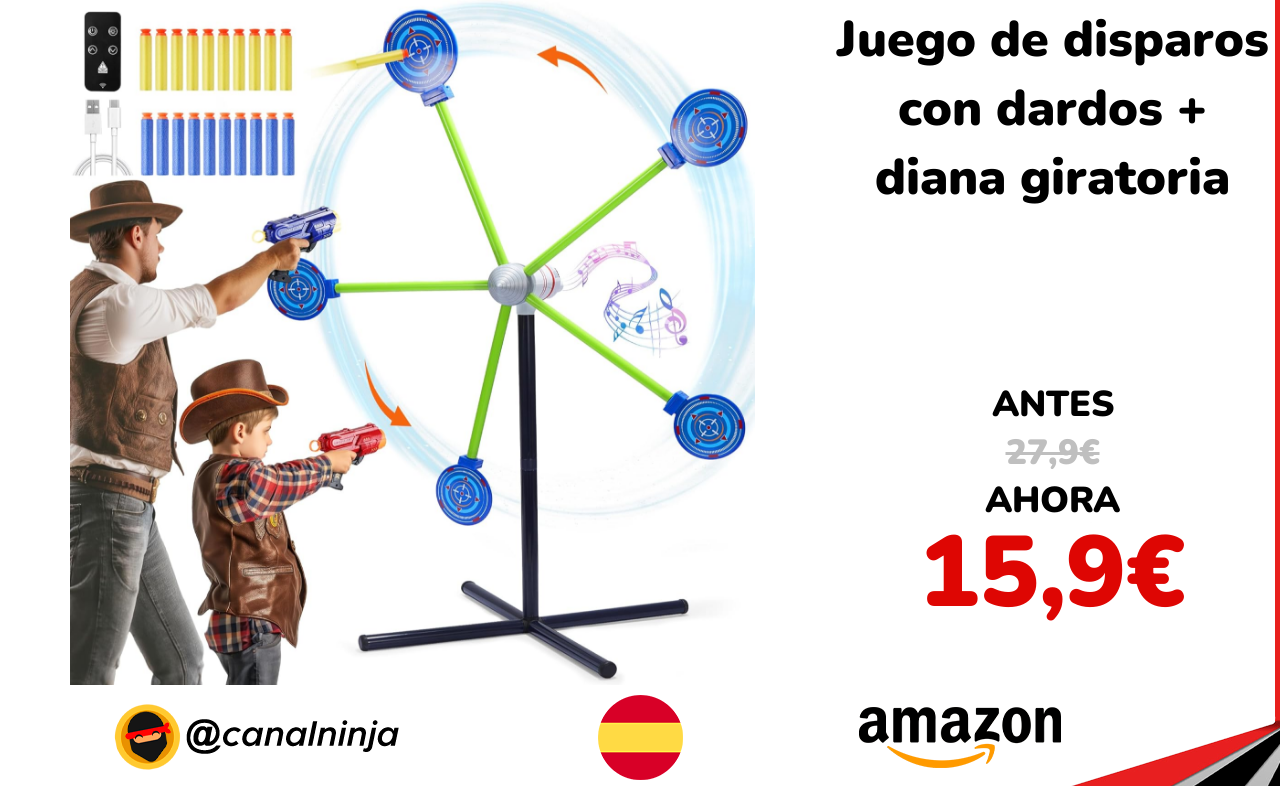 🔹 Juego de disparos con dardos + diana giratoria solo 15,9€ ❗️⚔️️ (PVP: 27,9€)