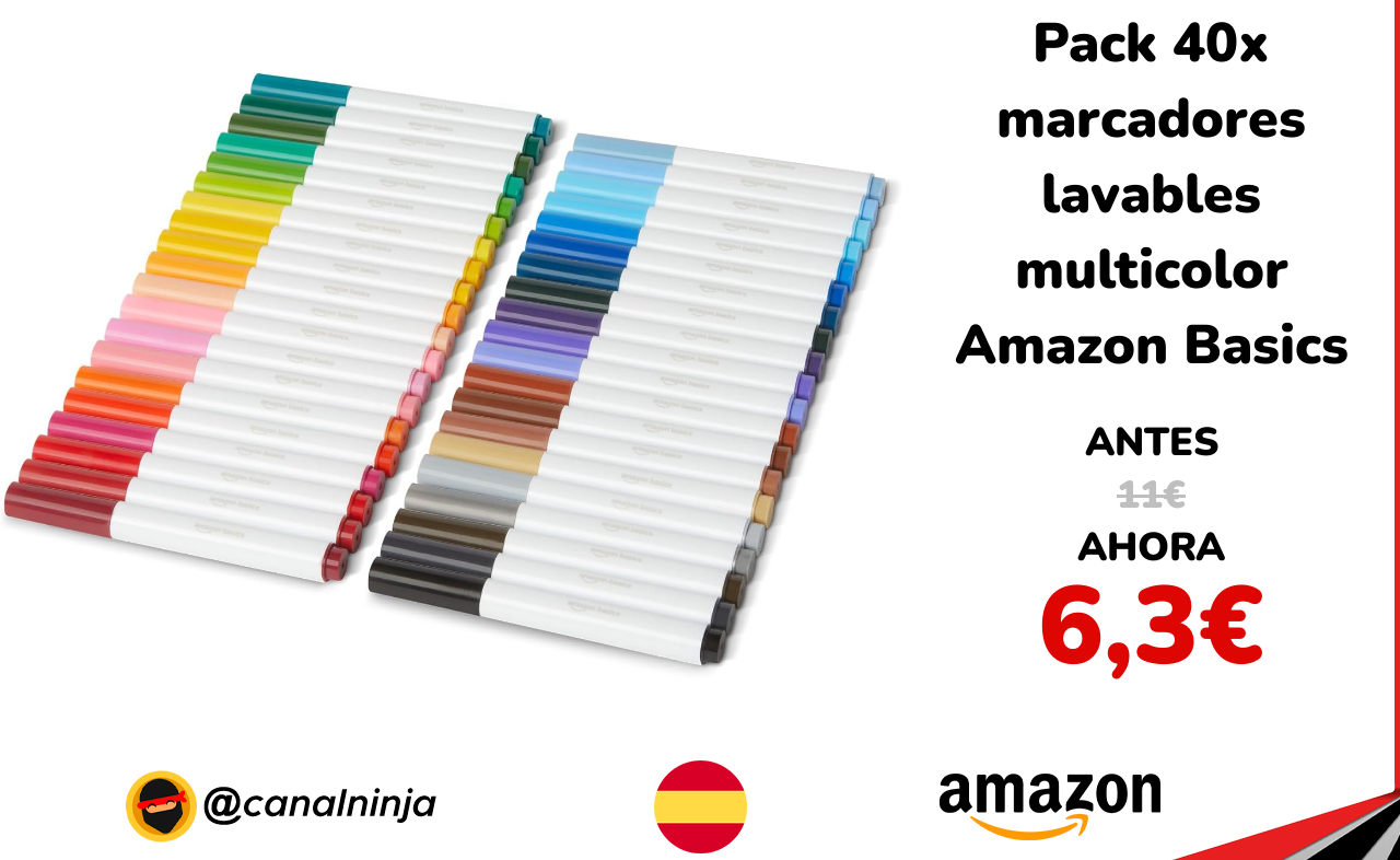 🔹 Pack 40x marcadores lavables multicolor Amazon Basics solo 6,3€ ❗️⚔️️ (PVP: 11€)