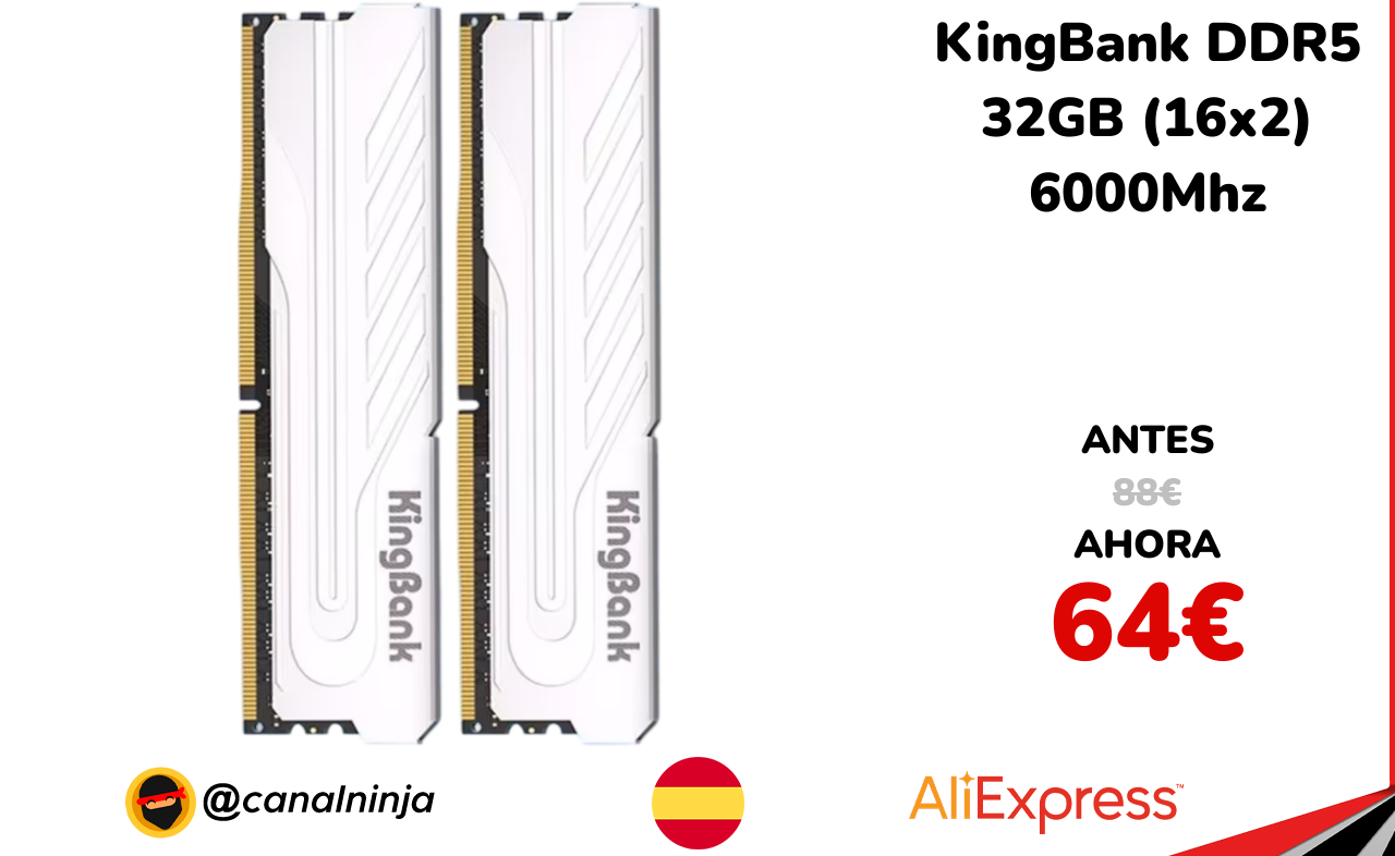 🔹 KingBank DDR5 32GB (16x2) 6000Mhz solo 64€ ❗️⚔️️ (PVP: 88€)