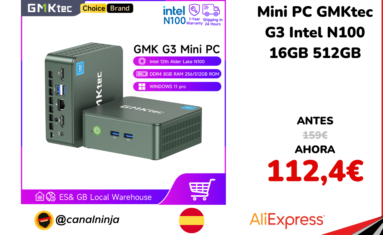 🔹 Mini PC GMKtec G3 Intel N100 16GB 512GB solo 112,4€ ❗️⚔️️ (PVP: 159€)