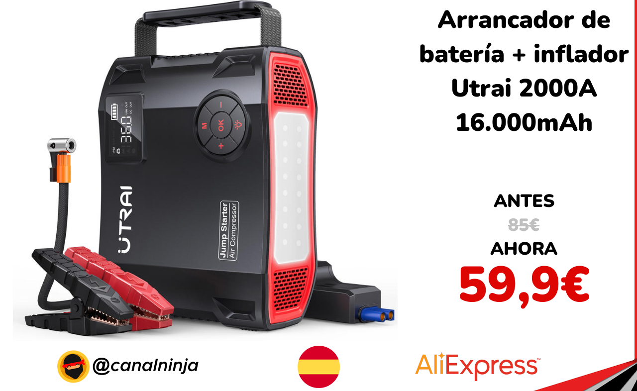 🔹 Arrancador de batería + inflador Utrai 2000A 16.000mAh solo 59,9€ ❗️⚔️️ (PVP: 85€)