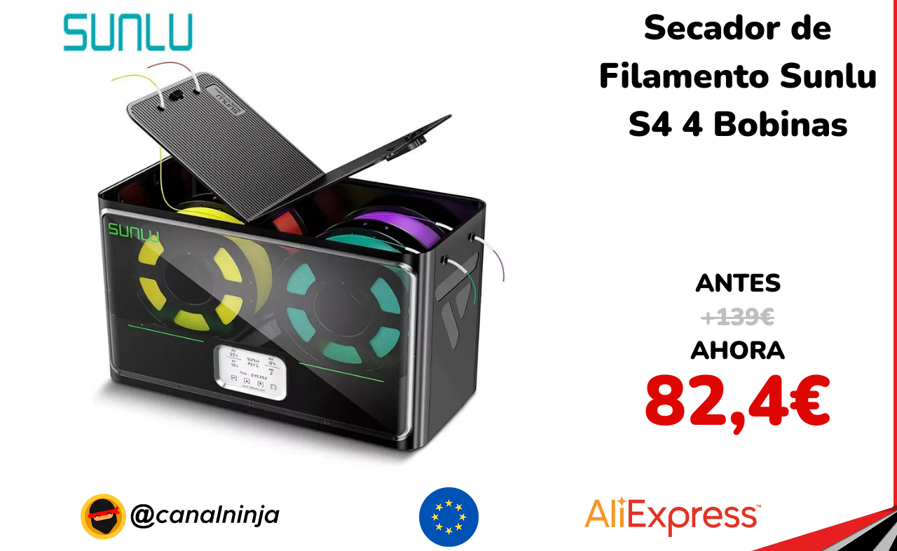 🔹 Secador de Filamento Sunlu S4 4 Bobinas solo 82,4€ ❗️⚔️️ (PVP: +139€)