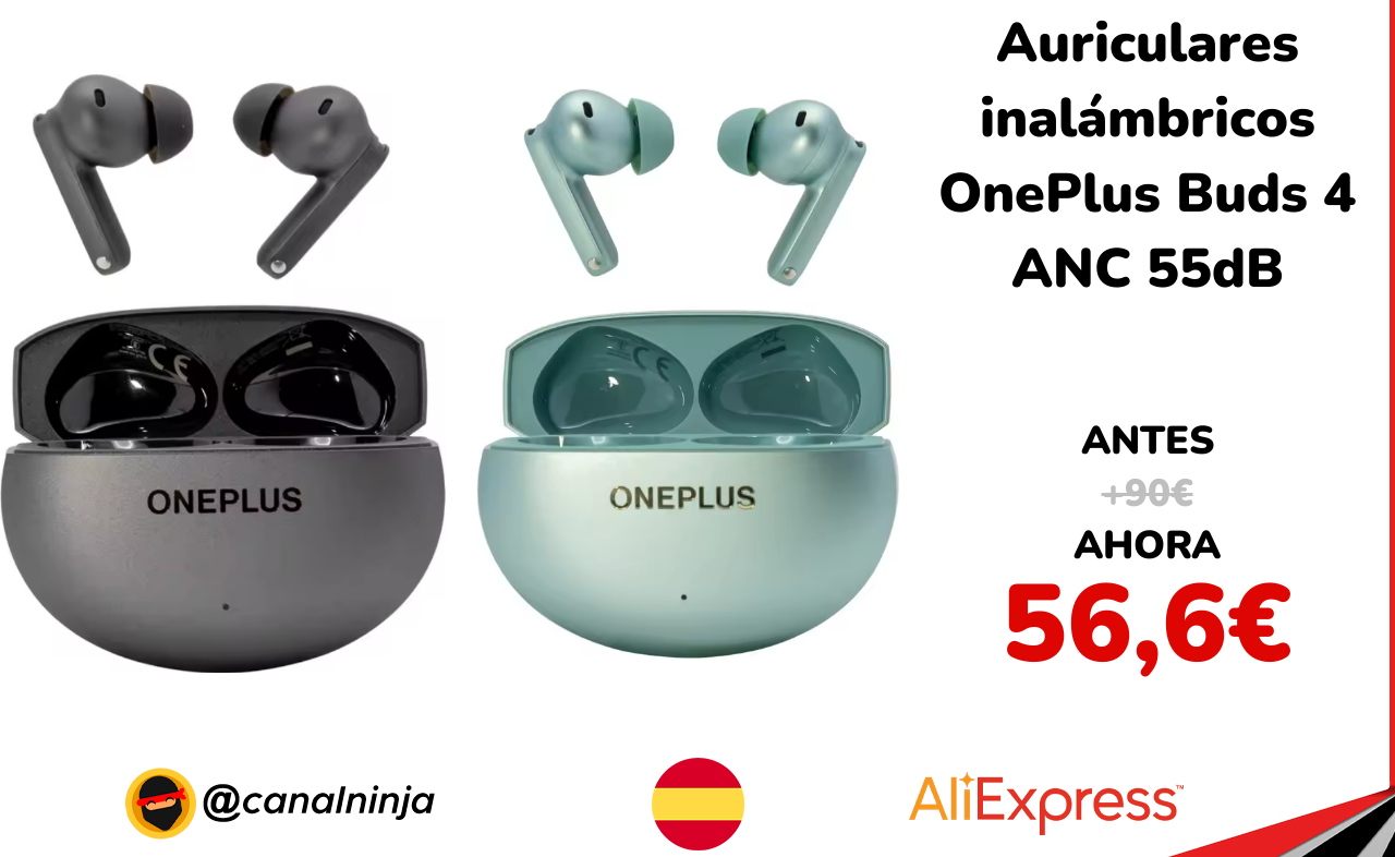 🔹 Auriculares inalámbricos OnePlus Buds 4 ANC 55dB solo 56,6€ ❗️⚔️️ (PVP: +90€)