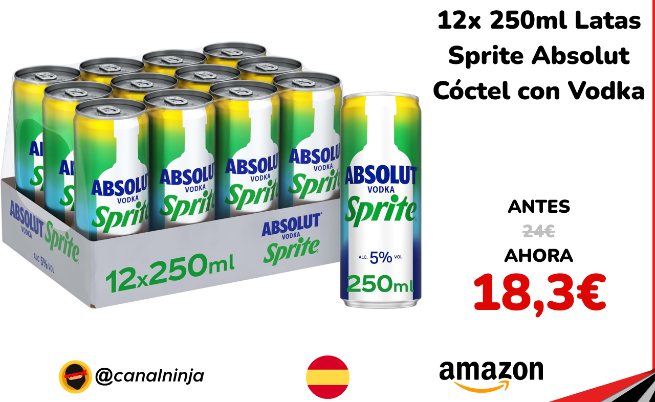 🔹 12x 250ml Latas Sprite Absolut Cóctel con Vodka solo 18,3€ ❗️⚔️️ (PVP: 24€)