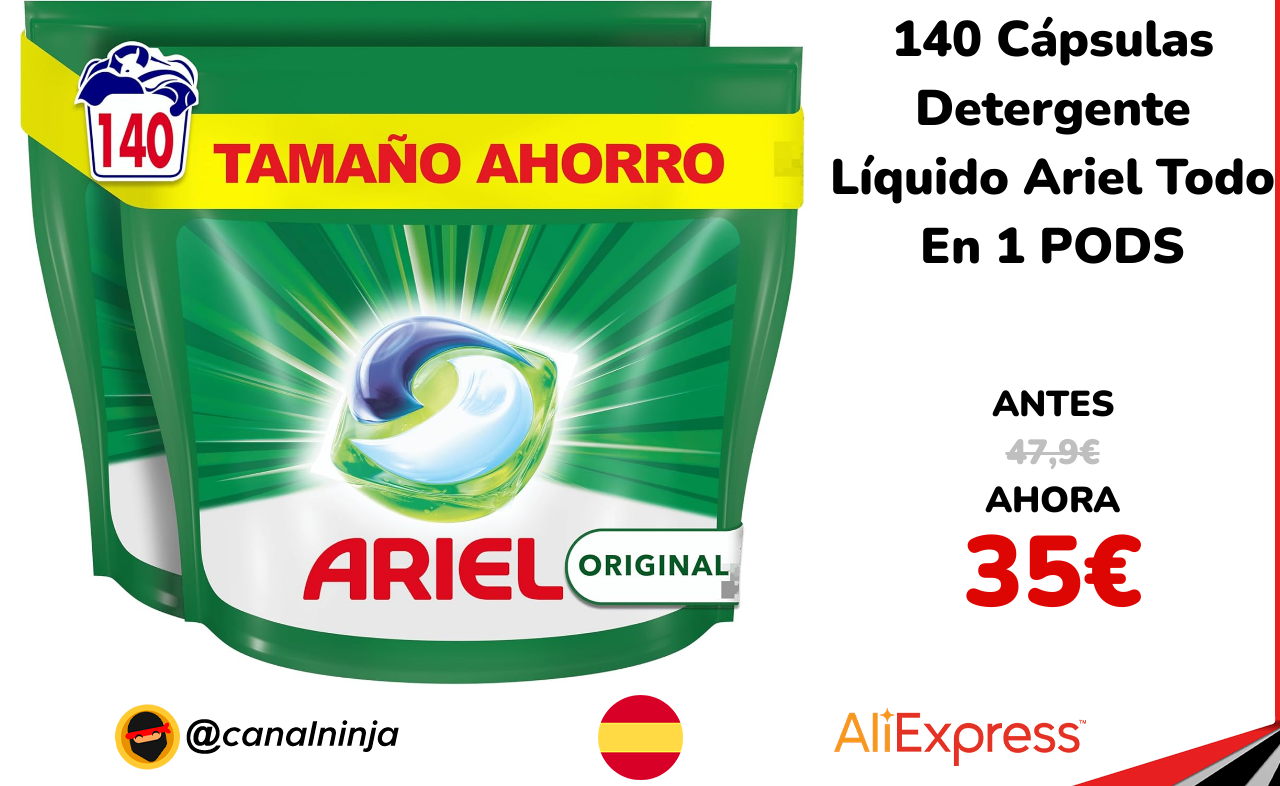 🔹 140 Cápsulas Detergente Líquido Ariel Todo En 1 PODS solo 35€ ❗️⚔️️ (PVP: 47,9€)