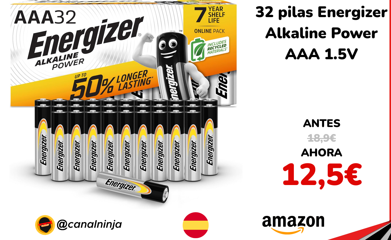 🔹 32 pilas Energizer Alkaline Power AAA 1.5V solo 12,5€ ❗️⚔️️ (PVP: 18,9€)