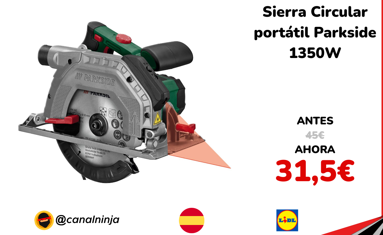 🔹 Sierra Circular portátil Parkside 1350W solo 31,5€ ❗️⚔️️ (PVP: 45€)