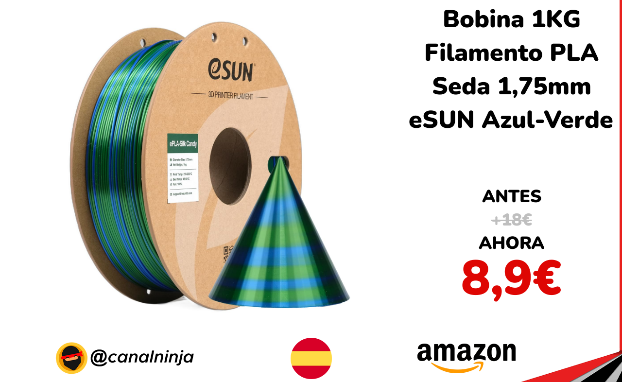 ✨ Preciazo en este filamento PLA Seda eSUN, 1.75mm y 1KG. Ofrece una textura sedosa y brillante con tonos multicolor que realzan la superficie lisa y sin líneas de capa, baja deformación y excelente adherencia, ideal para impresoras 3D FDM estándar. Enviado por Amazon.
