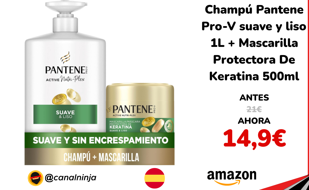 🔹 Champú Pantene Pro-V suave y liso 1L + Mascarilla Protectora De Keratina 500ml solo 14,9€ ❗️⚔️️ (PVP: 21€)