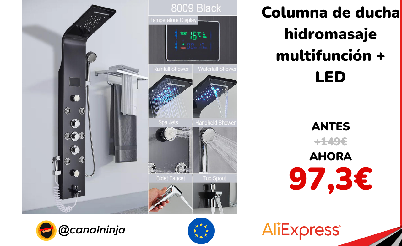 🔹 Columna de ducha hidromasaje multifunción + LED solo 97,3€ ❗️⚔️️ (PVP: +149€)
