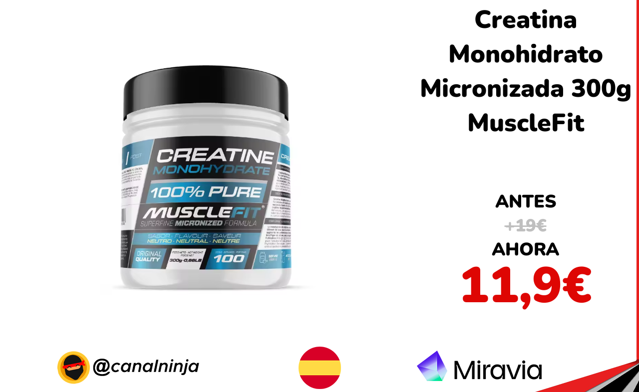 🔹 Creatina Monohidrato Micronizada 300g MuscleFit solo 11,9€ ❗️⚔️️ (PVP: +19€)