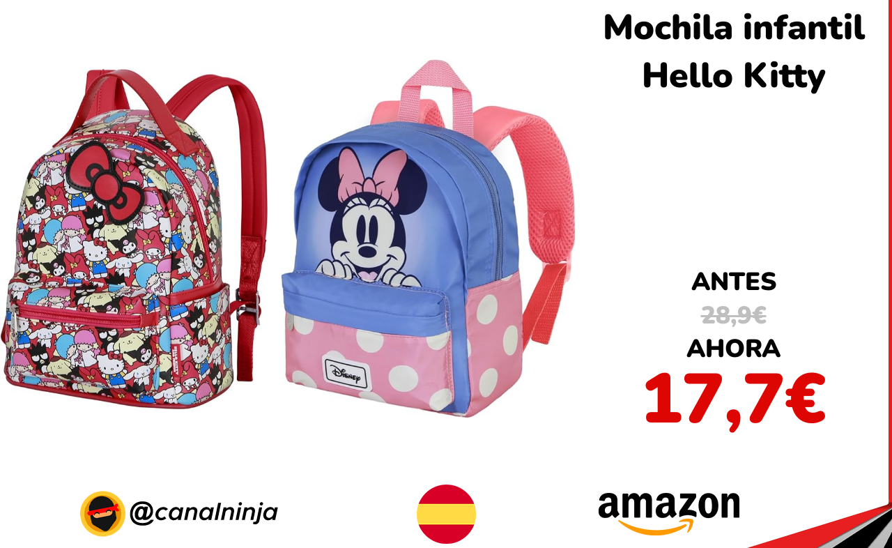 🔹 Mochila infantil Hello Kitty solo 17,7€ ❗️⚔️️ (PVP: 28,9€)