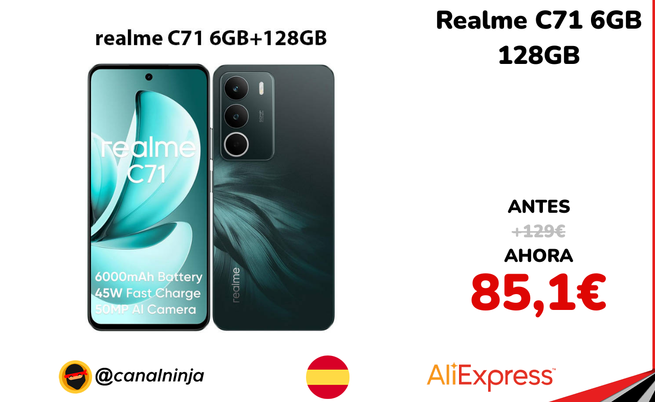 🔹 Realme C71 6GB 128GB solo 85,1€ ❗️⚔️️ (PVP: +129€)