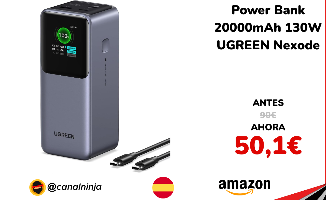 🔹 Power Bank 20000mAh 130W UGREEN Nexode solo 50,1€ ❗️⚔️️ (PVP: 90€)