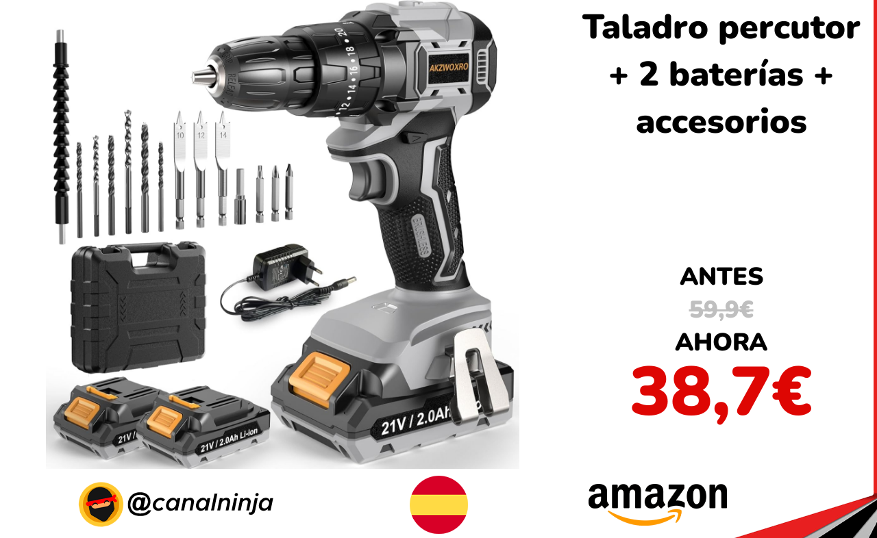 🔹 Taladro percutor + 2 baterías + accesorios solo 38,7€ ❗️⚔️️ (PVP: 59,9€)