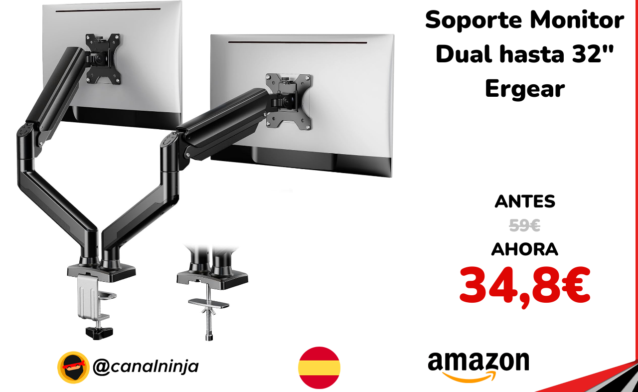 🔹 Soporte Monitor Dual hasta 32" Ergear solo 34,8€ ❗️⚔️️ (PVP: 59€)